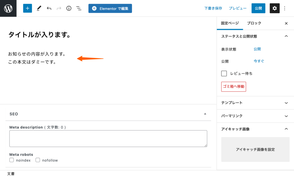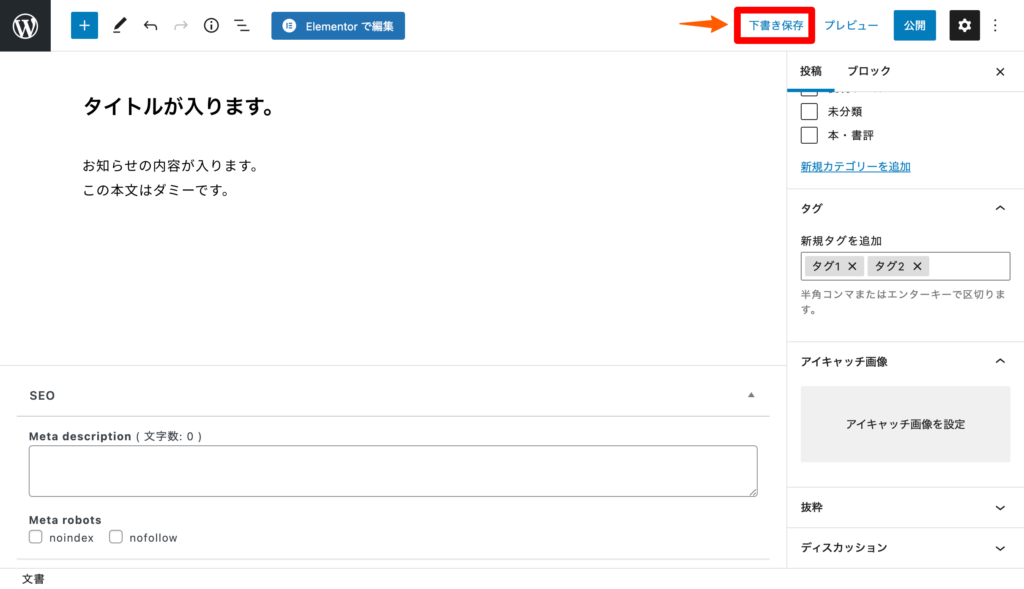 記事を公開する前に一度保存したいときは 下書きを保存を保存をクリックします。