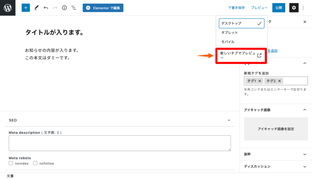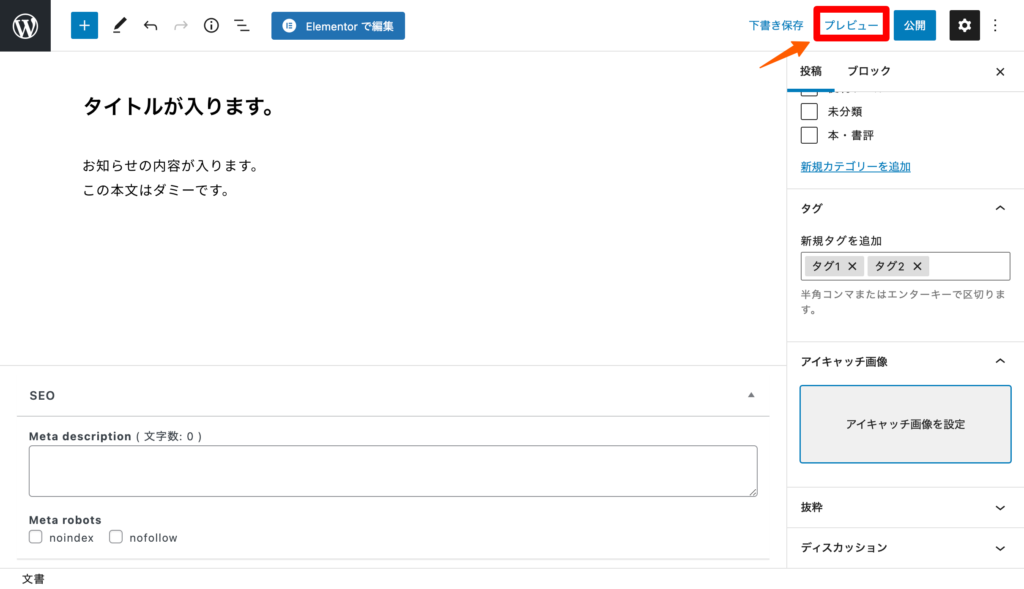 (※ プレビュー段階では記事の保存・公開はされません。)