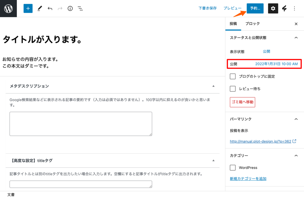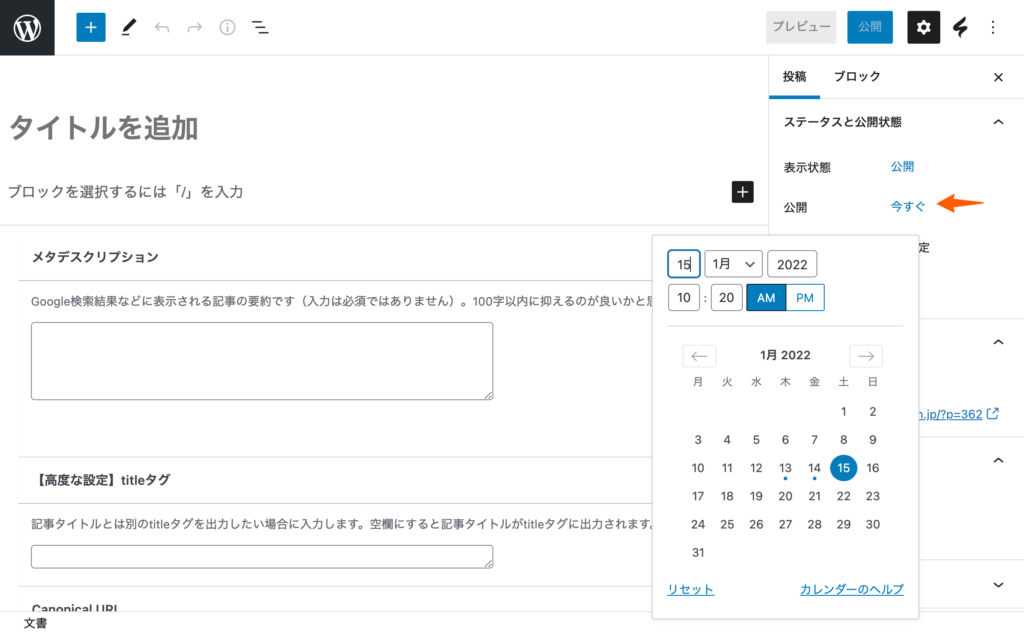 9.すぐに記事を公開せず、予約投稿をしたい場合